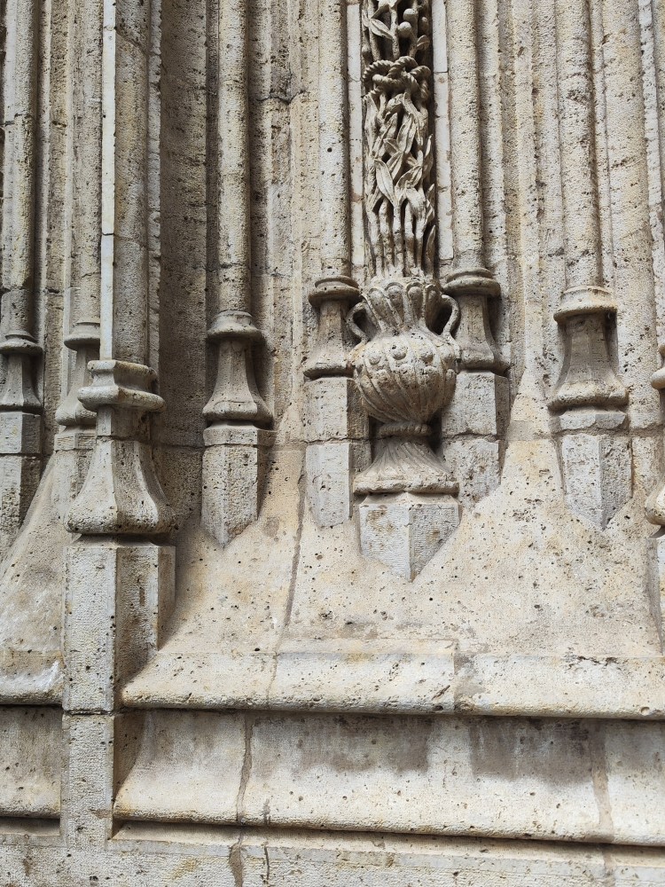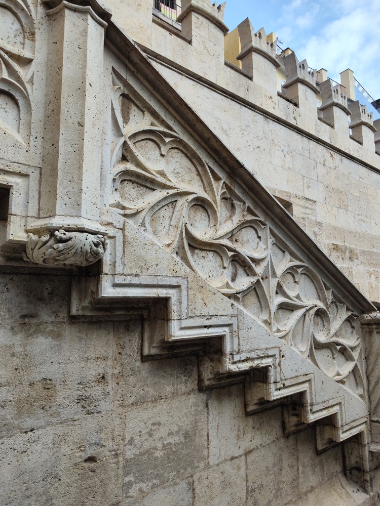 It was named a National Monument in 1931,8. UNESCO declared the Silk Exchange a World Heritage Site on December 5, 1996,910 as a “totally exceptional example of a secular building in late Gothic style, which “Splendidly illustrates the power and wealth of one of the great mercantile cities of the Mediterranean”, being considered one of the most brilliant examples of European civil Gothic. The rectangular facades of crushed stone, the sumptuous Renaissance medallions, the artistic sculptures and gargoyles, the perfect proportions of the doors and windows, the shields and the merlons, recall the splendour of Valencian late Gothic.