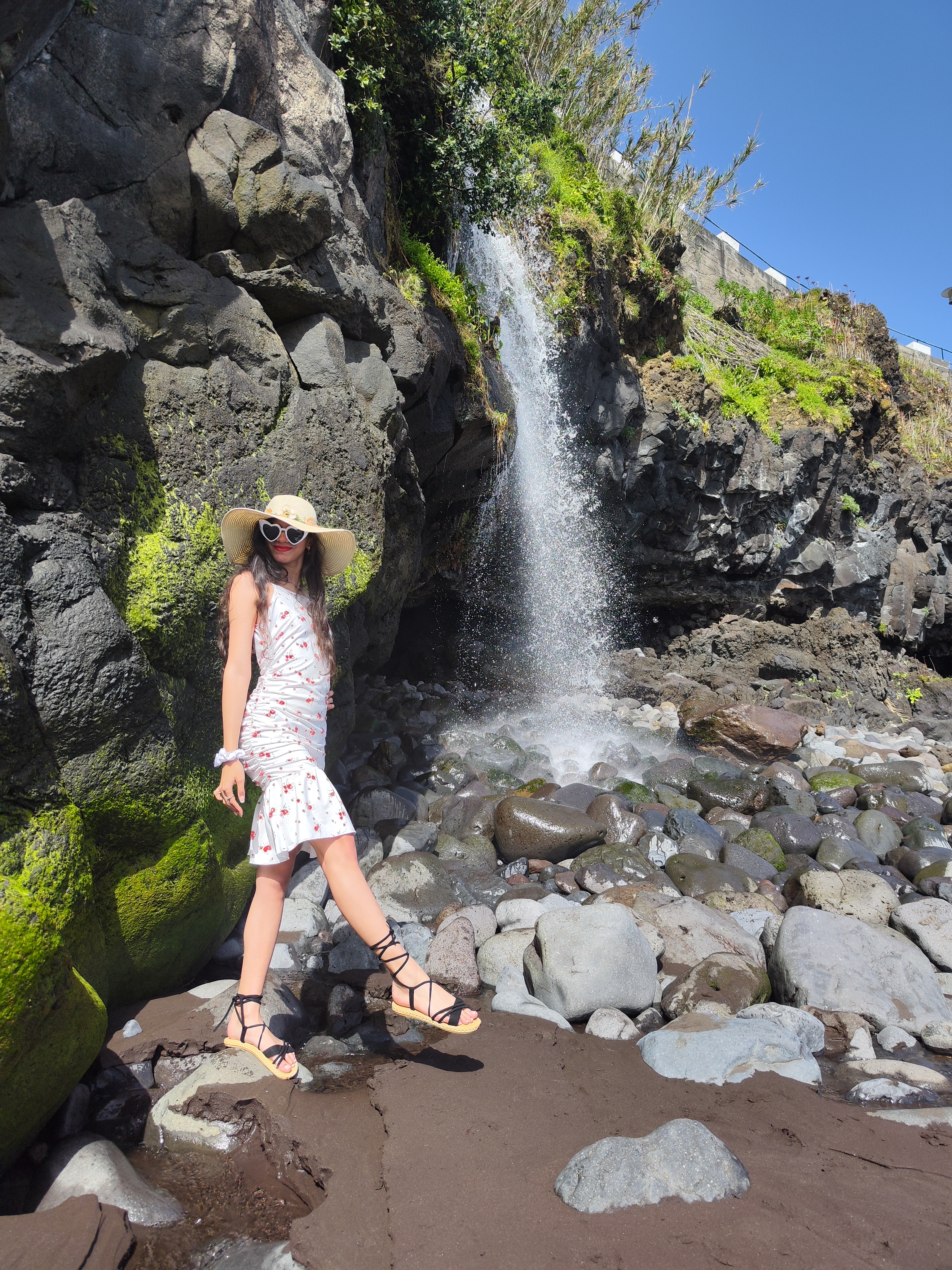 After encountering a curious cow along the way and parking the car further down the road to reach the waterfall, we continued our journey to Seixal. Renowned for its striking black sand beaches, cascading waterfalls, and vibrant surfing community, Seixal beckoned us with promises of natural beauty. The weather was splendid, prompting us to take a leisurely stroll along the shore, soaking in the serenity of the moment.